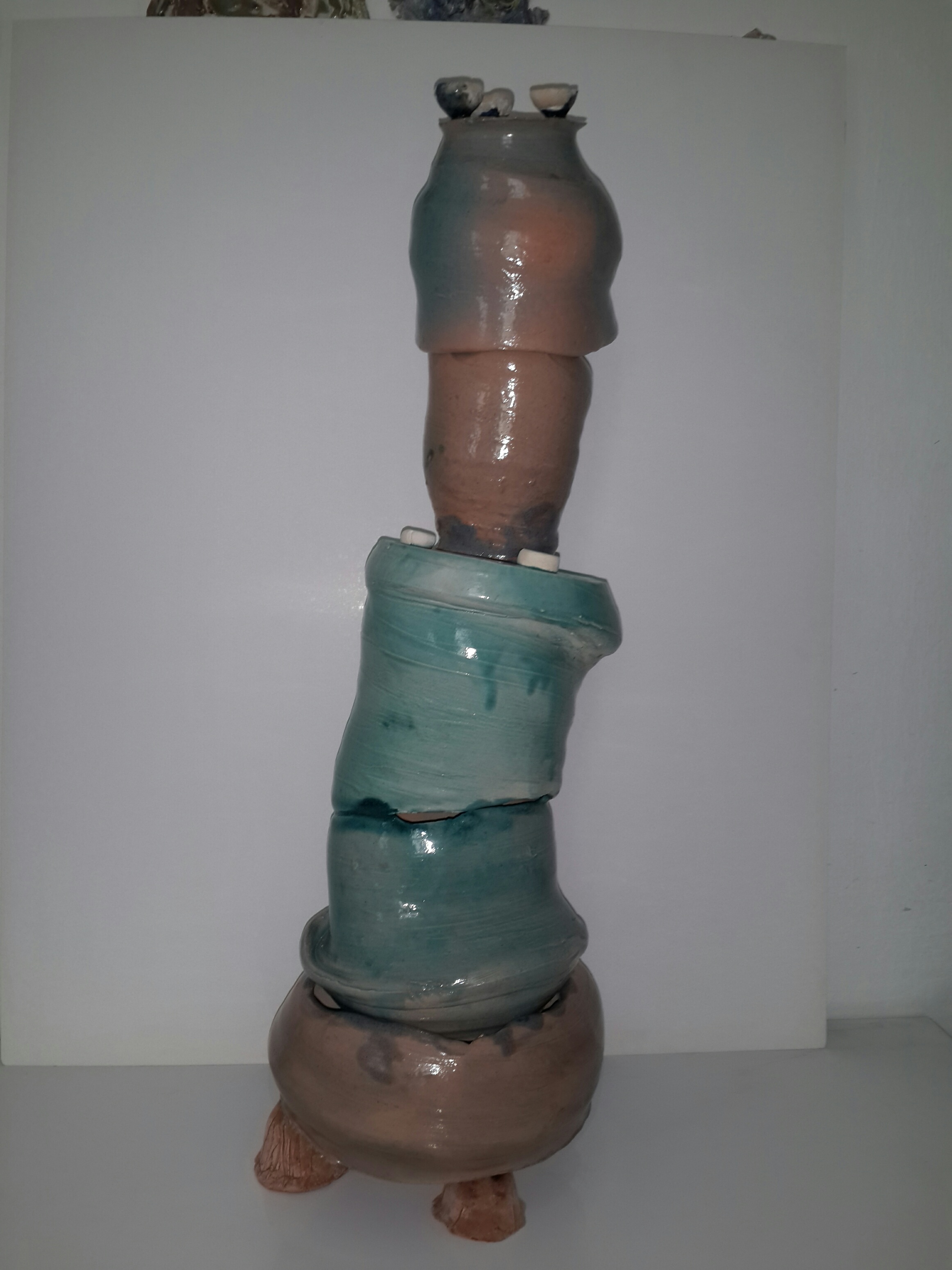 In den letzten Jahren hat sich Celina Jure zunehmend dem Objekt und der Installation zugewandt sowie dem Material Ton. Der bewegte, dynamische Duktus ihrer Malerei findet sich auch in der Art und Weise wie sie den Ton bearbeitet beziehungsweise in den Assemblagen ihrer Ton-Stelen, die jederzeit drohen ihre mühevoll gefundene Balance zu verlieren, um als Scherben auf dem Boden zu enden. Diese fragil anmutenden, in sich bewegten Objekte, stehen oftmals alleine oder größere Gruppen bildend zusammen.