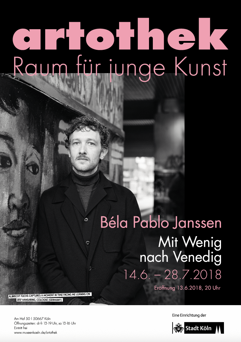 Unter dem Titel „Mit Wenig nach Venedig“ zeigt Béla Pablo Janssen (BPJ) in seiner ersten institutionellen Einzelausstellung in Köln zehn Werke aus seinem Schaffen der letzten drei Jahre.