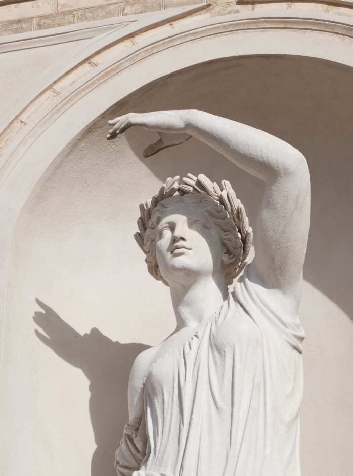 Immer­grüne Palmen lassen ihre Wedel im Winter nicht fallen, da sie an Orten ihres natür­li­chen Vorkom­mens Kälte nicht zu befürchten haben. Die exoti­schen Kübel­pflanzen der Parkan­lagen von Schloss Sanssouci in Potsdam werden im Oktober eines jeden Jahres zur Überwin­te­rung in die Orangerie gebracht um sie vor Herbst­stürmen und winter­li­chen Tempe­ra­turen zu schützen. Sara Hoffmann hat diese Einfuhr mit der Kamera begleitet und lässt die Gewächse wie Geister durch die histo­ri­sche Kulisse wandern. Die Ausblen­dung des Menschen als Verur­sa­cher der ungewohnt schnellen und abrupten Bewegungen vermensch­licht die Pflanzen und thema­ti­siert auf absurde und komische Weise die Kommo­di­fi­zie­rung der Lebewesen. Der Mensch tritt in Form lebloser Statuen auf, die das Gebäude schmü­cken und allego­risch für Garten­kunst, Indus­trie, Wissen­schaft und Jahres­zeiten stehen.