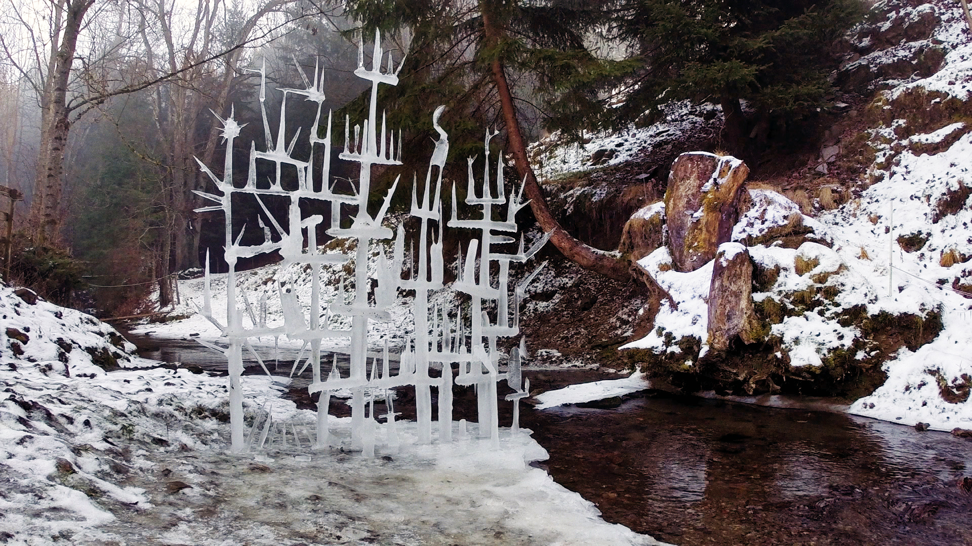 Aufblende. Ein Paravent aus gefrorenem Wasser, errichtet in unmittelbarer Nähe eines kleinen Flusses. Diese permeable Wand aus zahlreichen Eiszapfen wirkt sofort wie ein Fremdkörper in winterlicher Landschaft. Nein, nicht wie ein Fremdkörper, dazu passt sie sich zu gut der Landschaft an. Sie gleicht wirkt mehr wie ein künstlich errichtetes Gebilde, dessen Ursprung und Zweck zunächst ungeklärt bleibt. Zudem recken einige der kegelförmigen Zapfen ihre dünnen Enden wider der Anziehungskraft der Erde himmelwärts. Doch nicht mehr lange. Mehrere Filmszenen später erscheint ein junger Mann, der mit etwas Anlauf – nackt – die Eiswand durchbricht. Schnitt. Der zuvor eingeblendete Name benennt gleichzeitig den Schöpfer dieser Eiswand und ihren Zerstörer: „EISENBERGER“. So beginnt der Trailer zu einem Dokumentarfilm, dessen Hauptprotagonist eben jener Eisenberger ist. Christian. Österreichischer Ausnahmekünstler. Seine nunmehr dritte Einzelausstellung in der Galerie Martinetz ist schlicht als SUPERRETROSPEKTIVE betitelt. Wie ist das möglich? In dem bereits erwähnten Trailer zum Film über Christian Eisenberger – dessen Weltpremiere am 30. Oktober 2018 in Leipzig stattfand – heißt es, der Künstler habe inzwischen über 45.000 Werke geschaffen. Man muss sich das nur einmal kurz vorstellen, um anschließend festzustellen, dass ein Museum für diese Anzahl an Werken erst noch gebaut werden muss. Eine Superretrospektive kann also keine Retrospektive sein. Nicht bei Christian Eisenberger. Was dann?