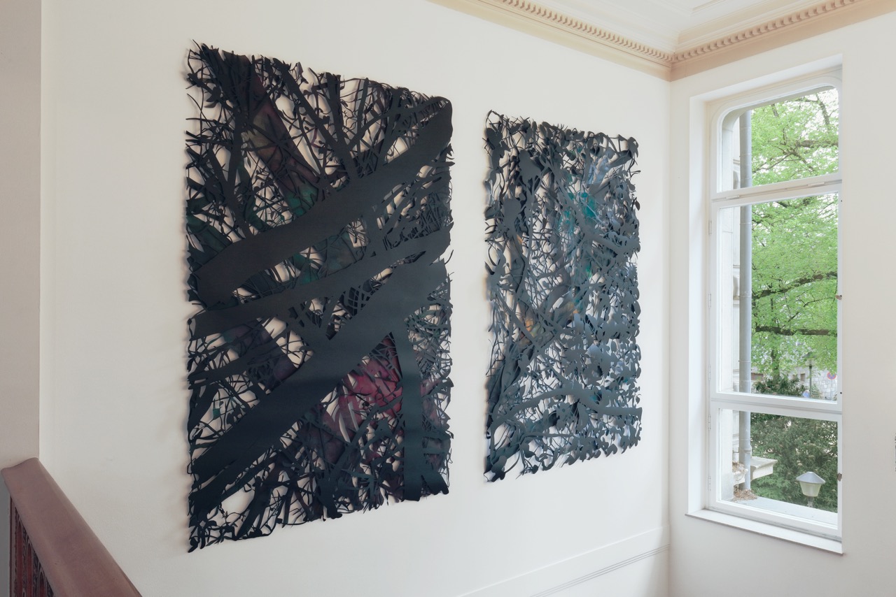 Ganz besonders freuen wir uns, am letzten Ausstellungstag eine Arbeit von Heike Weber vorstellen zu können, die Dank des großzügigen Engagements von Sylvia und Hans-Wolfgang Zanders für die Sammlung Kunst aus Papier des Kunstmuseum Villa Zanders erworben werden konnte. Mit der Schenkung eines zweiteiligen Scherenschnitts von Heike Weber wird die Bergisch Gladbacher Sammlung um eine weitere bedeutende Position bereichert. Das Werk wird zur Finissage im Treppenhaus gegenüber der Arbeit von Monika Grzymala installiert und dort für längere Zeit zu sehen sein.