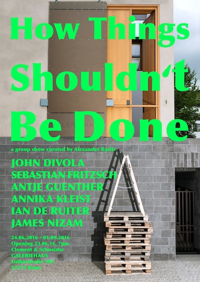 „How Things Shouldn’t Be Done“ behandelt Fragen des Wandels und zeigt KünstlerInnen, die ihren vorgefertigten Weg bewusst verlassen haben um in den Irrwegen des künstlerischen Schaffens neue Formen und Bildsprachen zu entdecken! Die Arbeiten der Ausstellung reflektieren einen künstlerischen Prozess, der sich gezielt gegen den visuellen Mainstream oder die Strömungen seiner Zeit richtet(e).