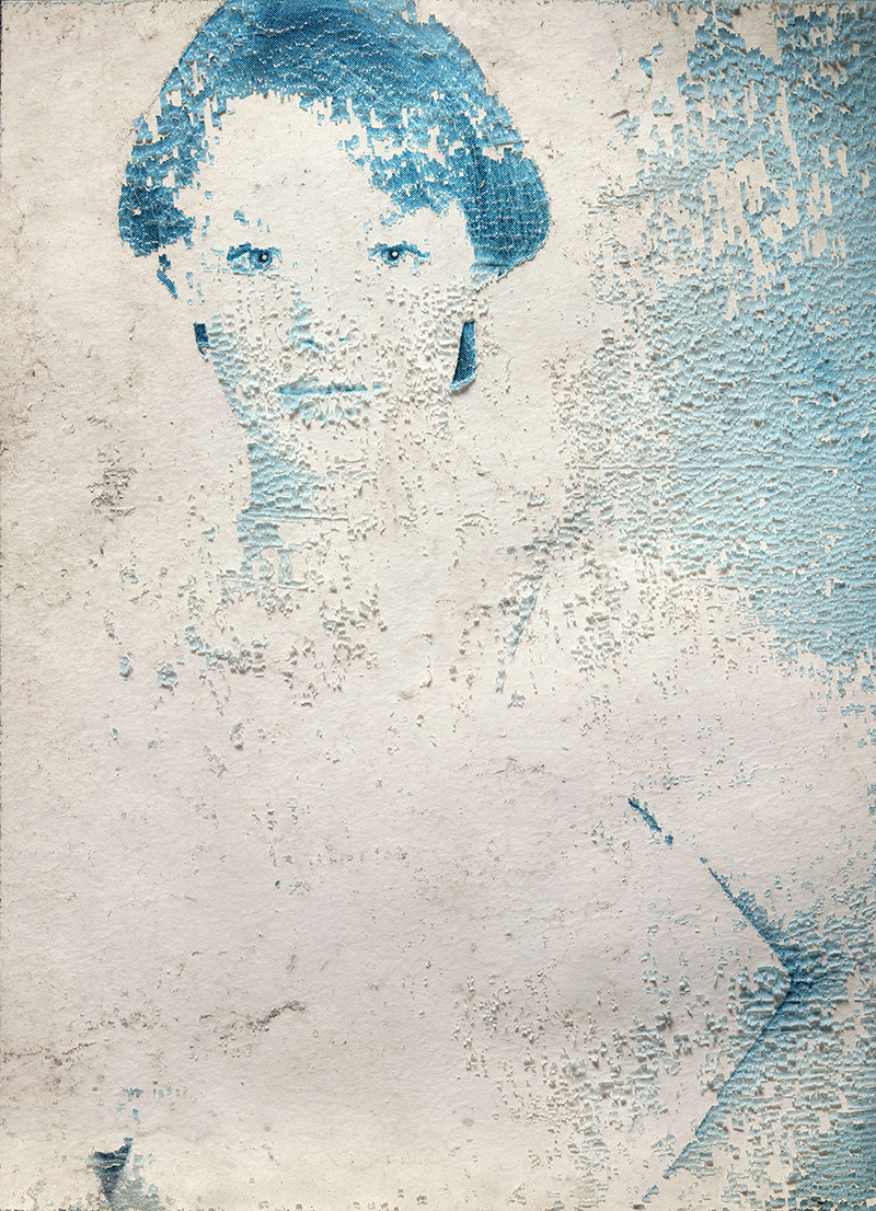 Ausgangspunkt der intermedialen Auseinandersetzung sind vorgefundene Modeaufnahmen. Die Foto-grafien, die der wie ein Bilderforscher agierende Künstler in einem Schaufenster in Tel Aviv entdeckte, waren durch stetige Sonneneinstrahlung nicht nur ausgeblichen, sondern dabei sich zu zersetzen.