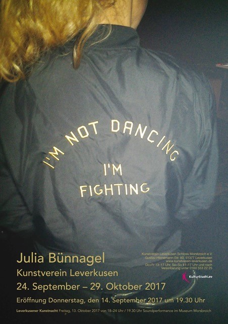 Der Kunstverein Leverkusen eröffnet am 14.September 2017 die Ausstellung „I´M NOT DANCING I´M FIGHTING“ der in Köln lebenden Julia Bünnagel. Ihre gattungssprengenden Arbeiten umfassen Skulpturen, großformatige modularer Installationen, Schriftbilder und Soundobjekte. Als Quelle dienen ihr audiovisuelle Beobachtungen aus Kybernetik, Architektur, Science Fiction, Musik und Wahrnehmungstheorie. Die gemeinsame mathematische Grundlage von Sound und Geometrie, das Spannungsfeld von Linie und Fläche, Volumen und Leere bilden ihre zentralen Bezugspunkte. Für die Räume des Kunstvereins hat Julia Bünnagel eine sich über beide Ausstellungsräume erstreckende Installation aus modularen Klang- und Lichtskulpturen konzipiert. Sie transformiert die Räume in eine dynamisch-multimediale Intervention, irritiert, verschiebt und hinterfragt die Verlässlichkeit von Wahrnehmung durch die enge Verbindung von visuellem und klanglichem Erleben.