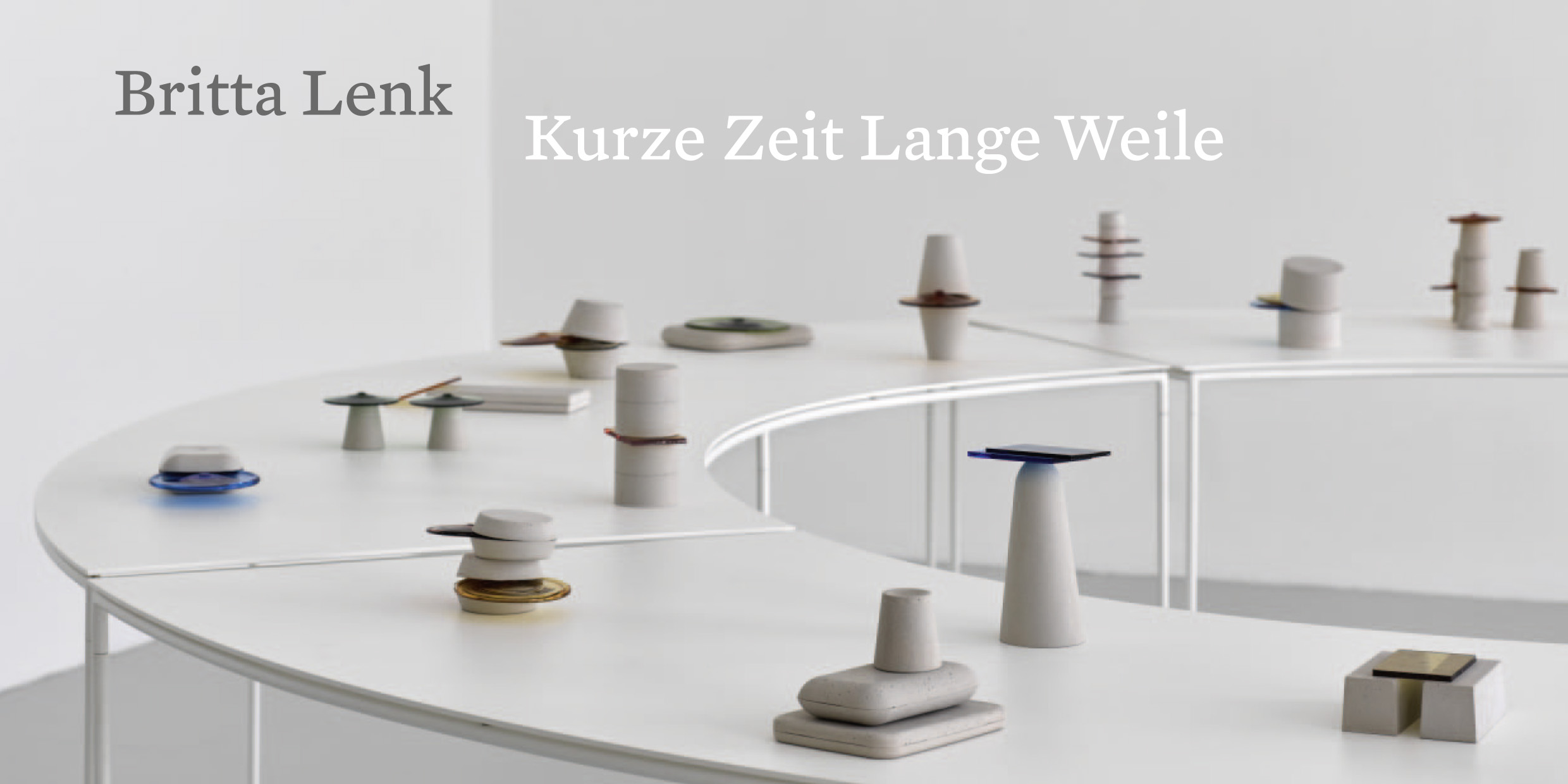 In der 2020 entwickelten Installation Kurze Zeit Lange Weile geht es um die Offenheit gedanklicher Handlungsräume. Es gibt ein Angebot modularer Grundelemente. In diesem Fall verschiedene kleine Körper aus hellem Feinbeton sowie Scheiben und Plättchen aus farbigem Glas. Arrangiert werden sie auf acht viertelkreisförmigen weißen Tischen. Diese Präsentationsflächen haben ebenfalls modularen Charakter und können in unterschiedlichen Anordnungen – zum Beispiel als zwei Halbkreise, als geschlossener Kreis oder vereinzelt – aufgestellt werden.