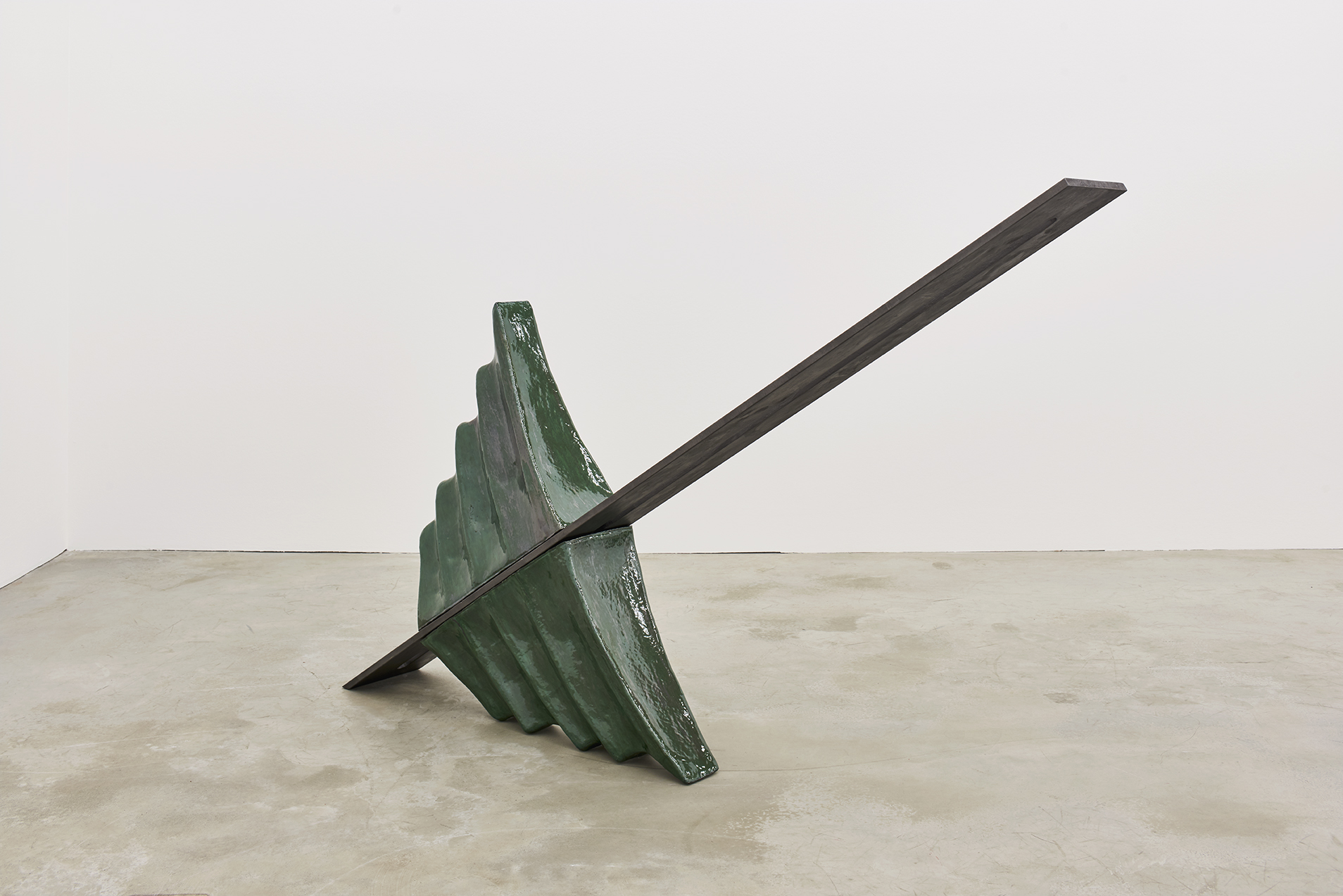 ceramic, glaze, wood, 177 x 96 x 36 cm