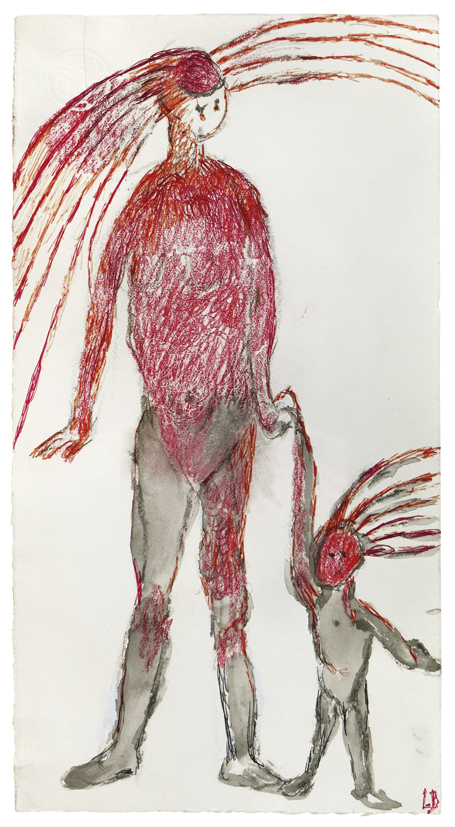 Nicht ohne eine selbstironische, schalkhafte Note wiederholt Bourgeois die schmerzhaften Rollengefüge durch wiederkehrende Grundformen. Eine solche repetitive Anhäufung geht bei Bourgeois mit dem „Wunsch, die Vergangenheit zu reparieren“ einher, so dass sie ihre Zeichentätigkeit mit der Restaurierung von historischen Tapisserien in der elterlichen Werkstatt vergleicht. „Glücklicherweise habe ich den Familienhintergrund, dass wir beschädigte Wandteppiche reparierten, und die Vorstellung vom Reparieren ist mir geblieben. Dinge können repariert werden. Ich habe einiges Vertrauen zu symbolischen Handlungen.“ Das dichte Gewebe von Bourgeois‘ Zeichnungen besteht aus intuitiven Gefühlsäußerungen und spiegelt die intime Zeichenhaftigkeit der Formen, sowie die emotionale Eindringlichkeit der verarbeiteten Inhalte wider.