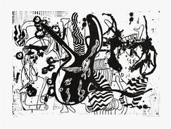 Die Ausstellung führt Oehlens flirrende Kompositionen auf ihre grafische DNA zurück. Im Zentrum steht eine Suite von 76 Linolschnitten, die in den Jahren 1990-96 entstanden sind und 2006 gedruckt wurden. Hier entfaltet sich Bild für Bild sehr spielerisch Oehlens motivi-sches Panoptikum. Hier lässt sich nachvollziehen, wie Schritt für Schritt eine Form zur anderen kommt, wie sich einzelne Strukturen unter der Hand des Künstlers wandeln und in neue Kontexte überführt werden – ein Pool von grafischen Motiven, die der Maler wie ein Kaleidoskop nutzt und daraus schichtweise neue Bilder aufbaut.