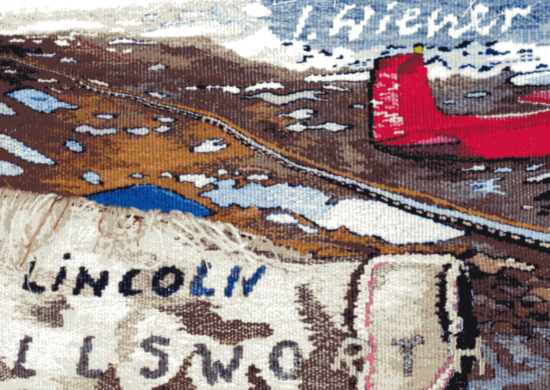In ihrer 12-teiligen Gobelin-Arbeit „ NORDEN (Lincoln Ellsworth)“ präsentiert sie den weiten Blick aus einem Flugzeug-Fenster, über ausgedehnte Strecken Kanadas hinweg, der arktischen Tundra, samt der Alaska Range – das Ganze noch bildlich durchzogen von Eisbergen, Meeren und Flusslandschaften.