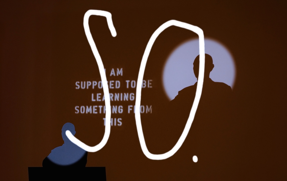 Peter Morrens und Reinhard Doubrawa sind Künstler, die in Sprache und Text wesentliche Ausgangspunkte für ihre visuellen Arbeiten sehen. In ihrer Performance „so“ verwenden sie aus Karton gefertigte Kulissen und Schablonen, die für eine Art Schattenspiel verwendet werden. Unter Einbeziehung des gesamten Raumes und der Nutzung von Ton- und Klangelementen werden sie den Abend über permanent und reflexartig aufeinander reagieren. Hergestellte Sinngefüge werden dabei immer wieder zum Einsturz gebracht, um improvisierend Neue entstehen zu lassen.