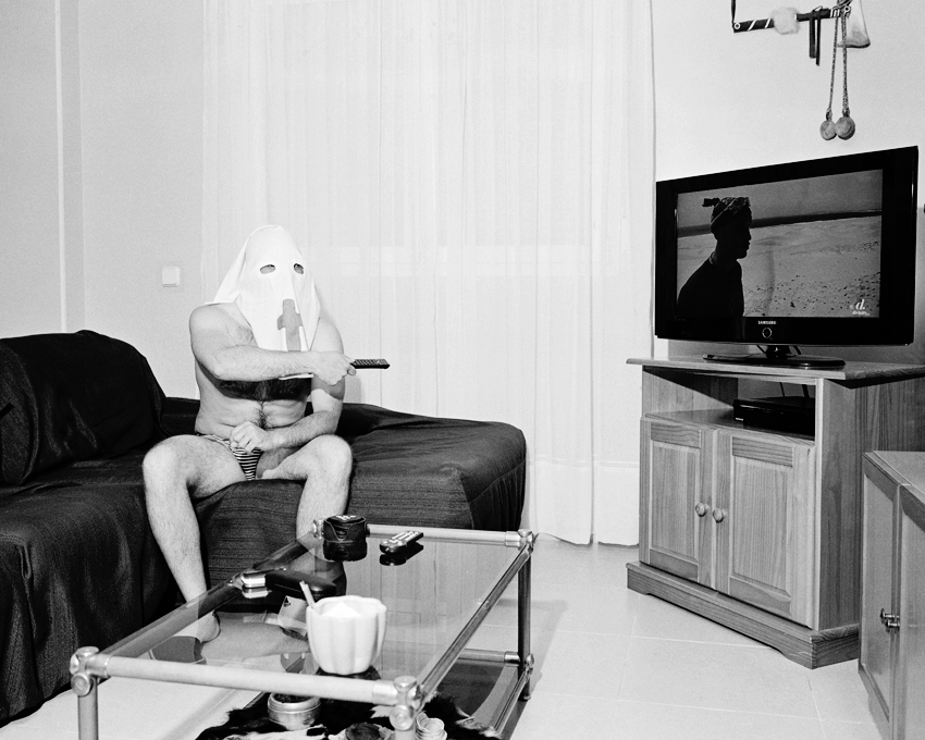 Der spanisch-argentinische Fotograf Sebastián Bruno begab sich auch auf diese Reise. Aus der Perspektive Don Quichotes taucht er tief in die Umgebung und das Leben der Einwohner ein. Die autonome Gemeinschaft Kastilien-La Mancha ist eine dünn besiedelte, wirtschaftlich stagnierende Region. Die alternde Gesellschaft ist geprägt von der Beharrlichkeit ihrer Einwohner in Bezug auf ihre jahrhundertelang gewachsenen Traditionen und Vorstellungen des moralischen Lebens, die neben den kurzlebigen Moden, den Widersprüchen des Alltags und den Veränderungen der ariden Landschaft weiterhin existieren. Bruno hinterfragt die Werte und Traditionen, Tugenden und Laster, die in dieser monotonen Wirklichkeit zu finden sind. Er porträtiert die Menschen und ihre Umgebung am Tag in der gleißender Sonne, bei der Arbeit, zu Hause und an öffentlichen Orten oder er begegnet den Einwohnern nachts bei Prozessionen und Umzügen, wenn sie aus dem Schatten in das helle Licht des Fotoblitzes tappen, wie in eine Fotofalle.