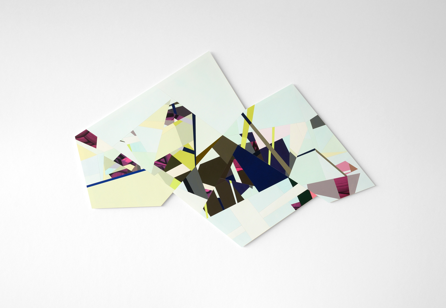 Die collagen- oder montageähnlichen Arbeiten auf Papier von THOMAS KEMPER (*1957) zeigen plastisch und zerklüftet anmutende Konstruktionen mit lediglich annähernd geometrischem Grundriss. Im Innenleben greifen Zäsuren, Synkopen, Kontrapunkte oder Akkorde, die auf lichte und schattige, kühle und aufgeheizte Farbfelder sowie auf malerisch poetische Segmente Einfluss nehmen.
