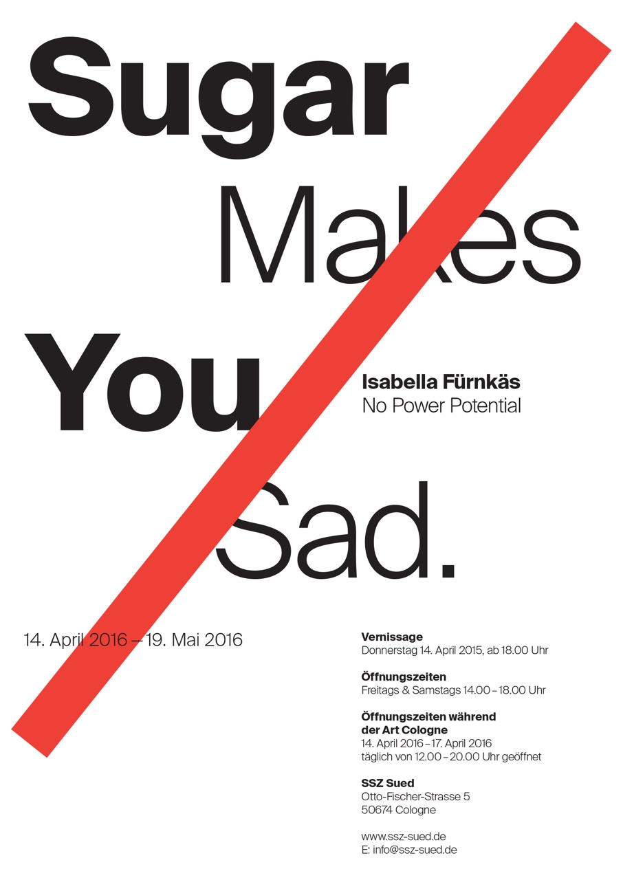 SUGAR MAKES YOU SAD von Isabella Fürnkäs ist eine ortsspezifische Arbeit, die für das SSZ Sued anlässlich dieser Ausstellung entwickelt wurde. Im Fokus steht dabei eine kritische Befragung der gesellschaftlichen Orientierung am Potential im Kontext von Produktion.
