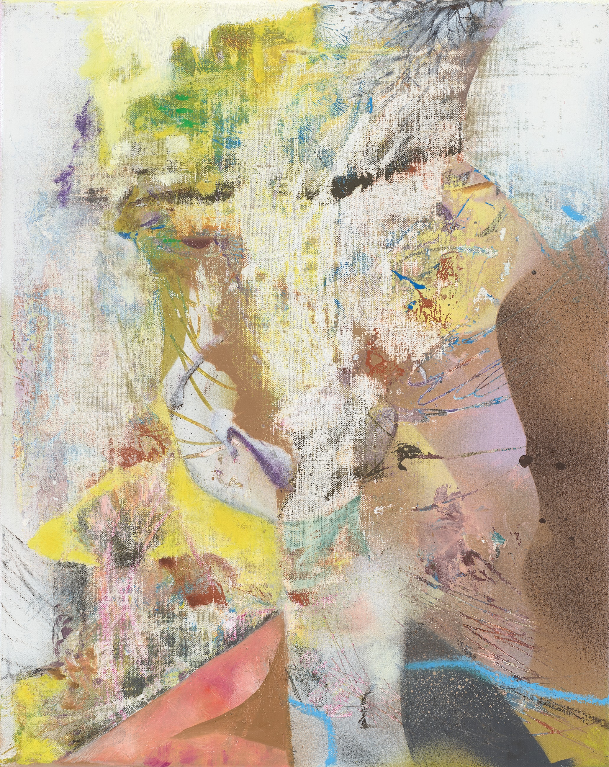 In einer Reihe von kleinformatigen Werken sehen wir meist im Profil angedeutete Gesichtsfragmente in expressiven, von Pastell- bis zu Neontönen reichenden Farben. Es begegnen uns darin janusköpfige, anthropomorphe Formen, in denen man zudem manchmal das Konterfei des Künstlers selbst erkennen kann.
