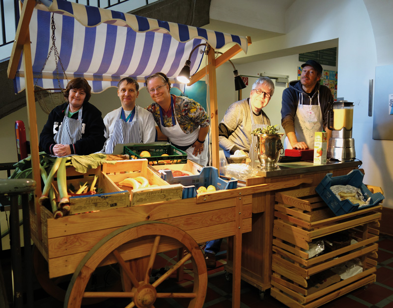 und BewohnerInnen des Geländes zeigen ihre Arbeiten.